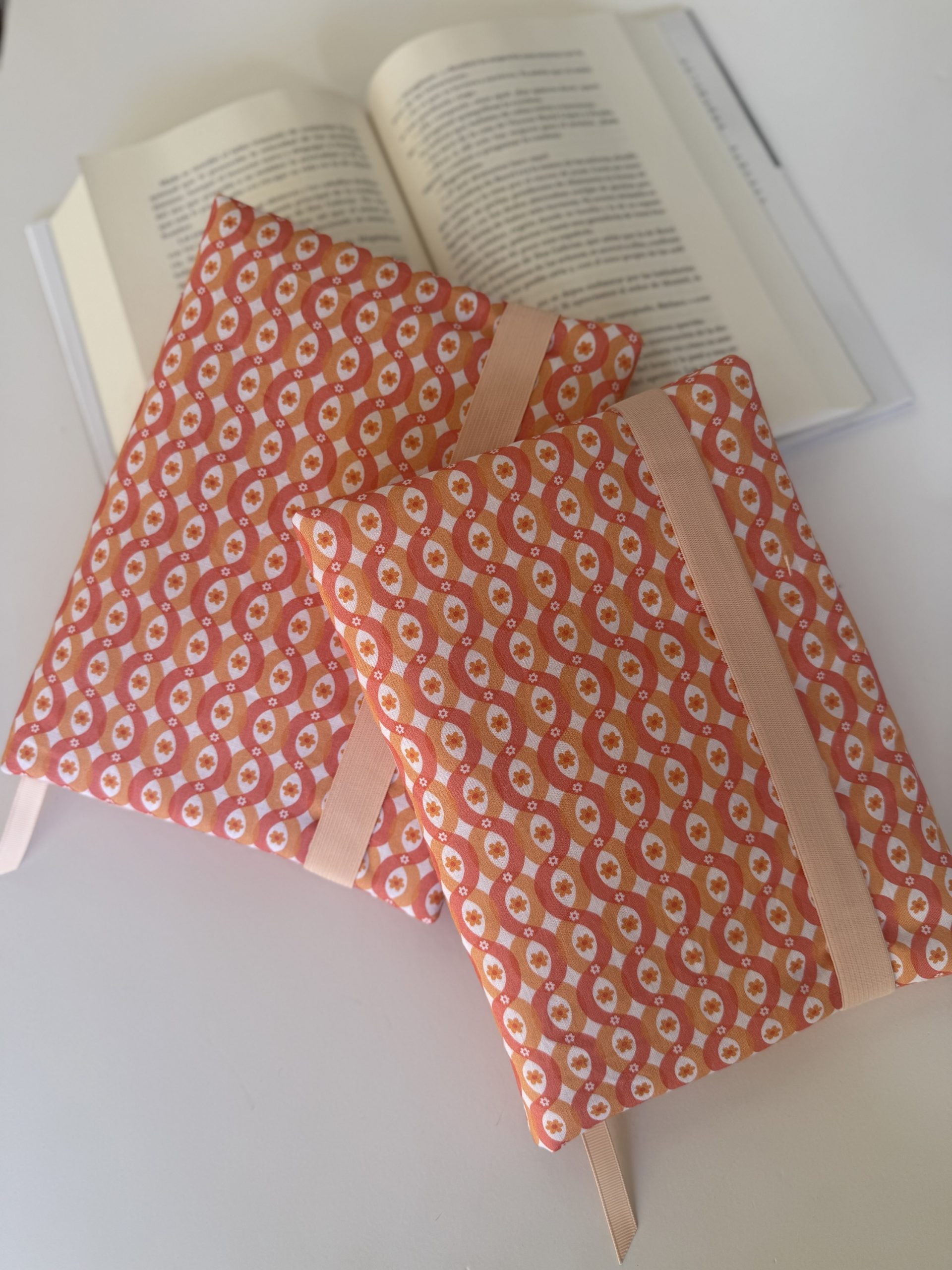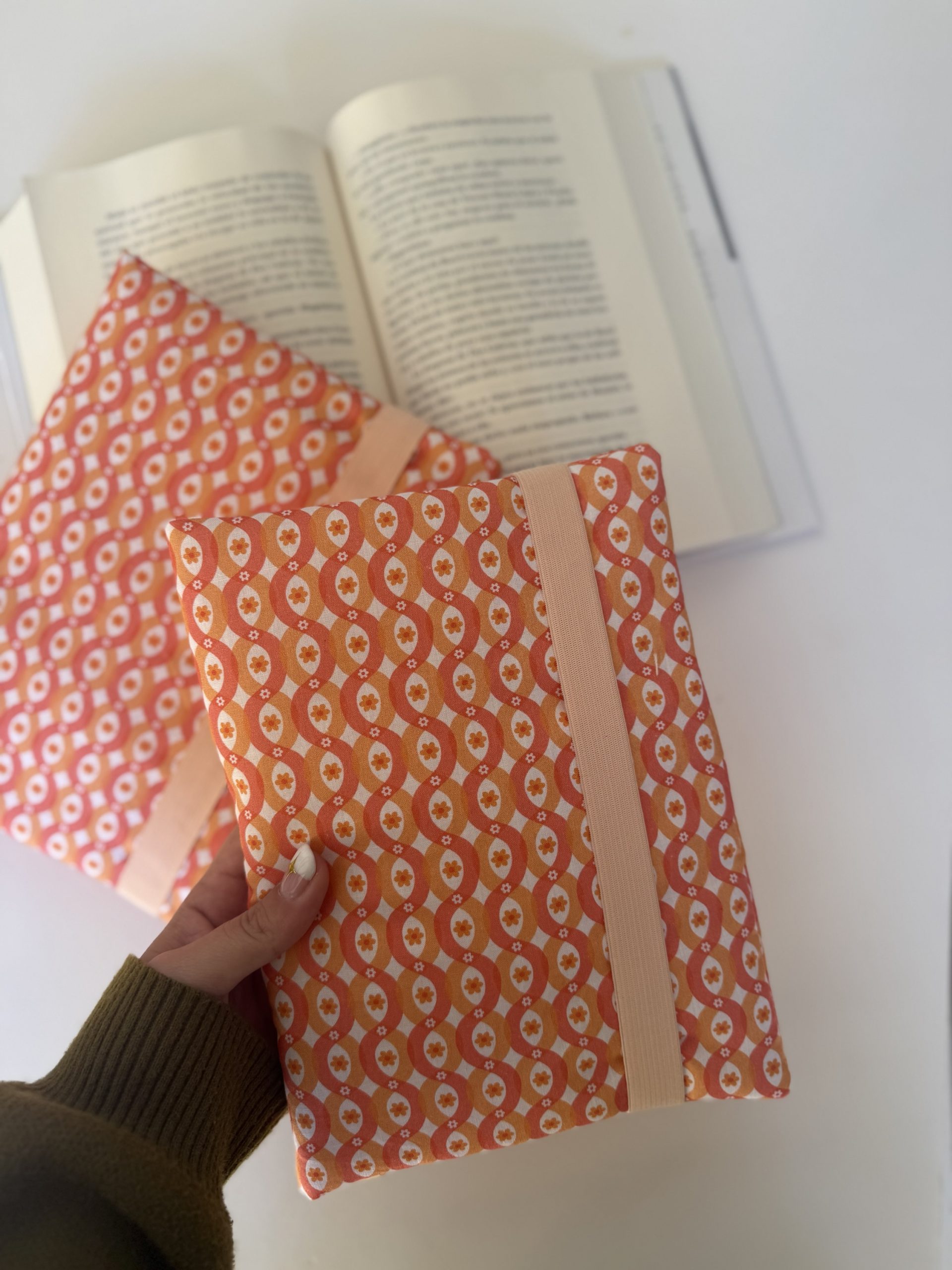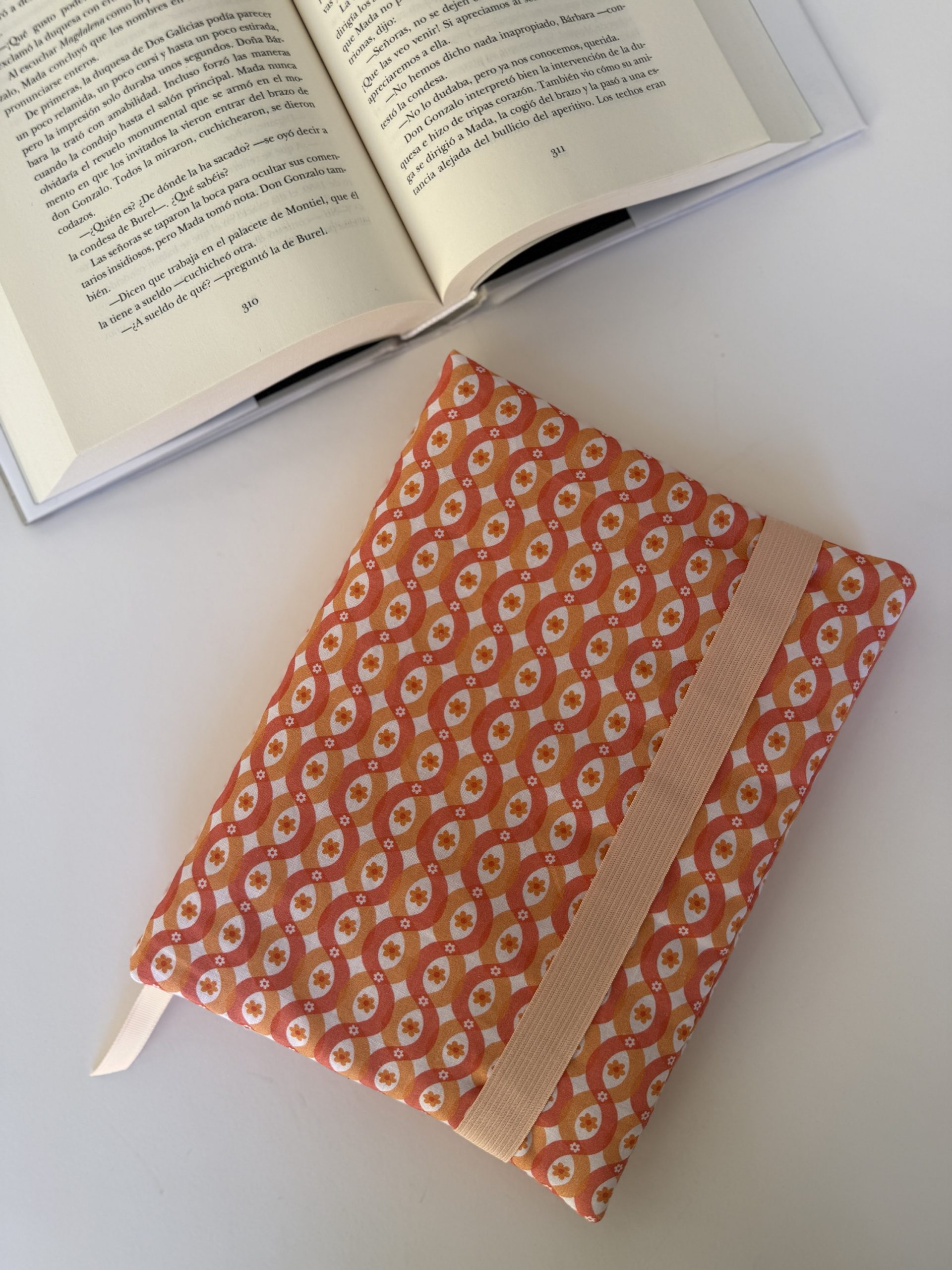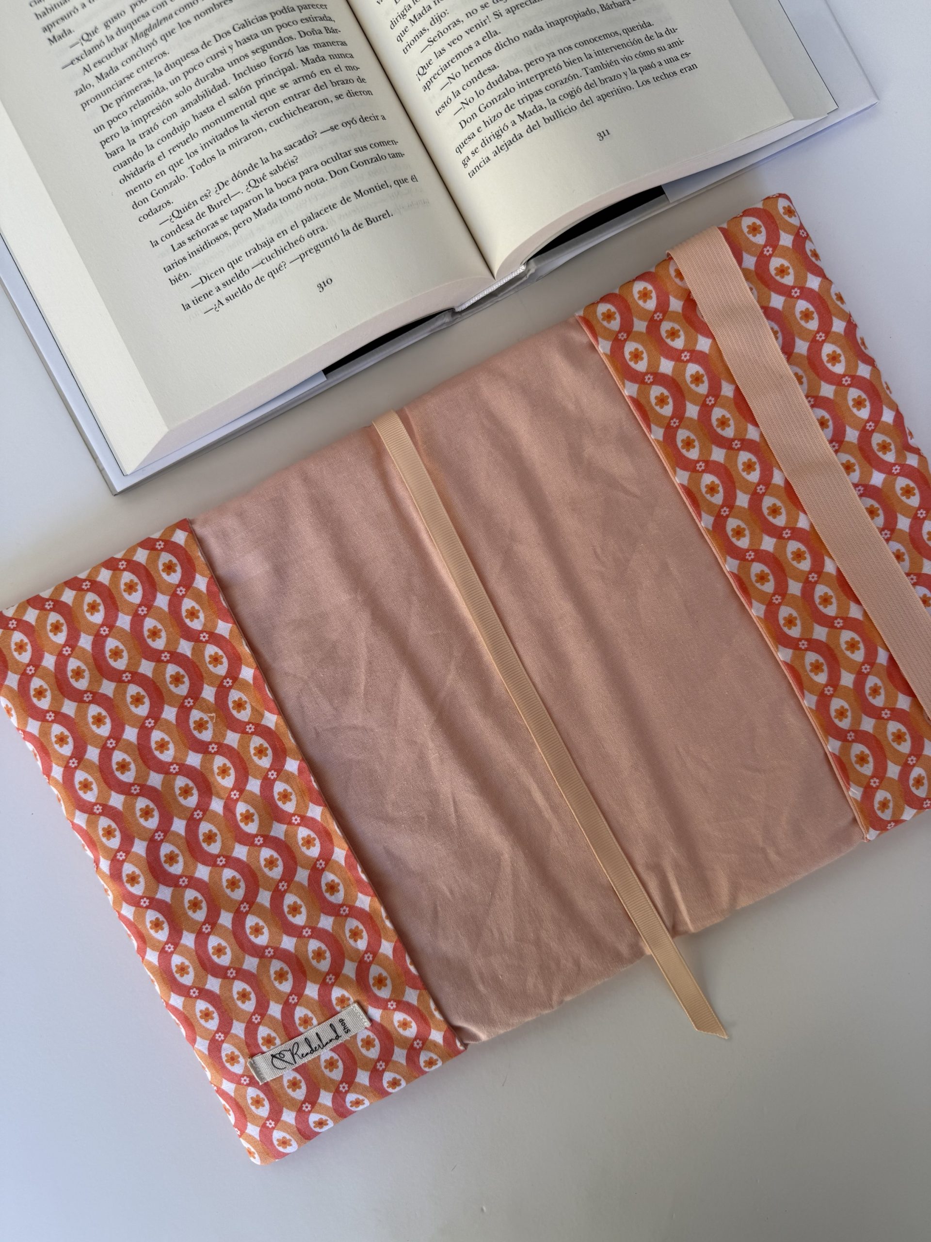 Funda de solapas para libro con estampado penny. 100% algodón y hecha a mano.