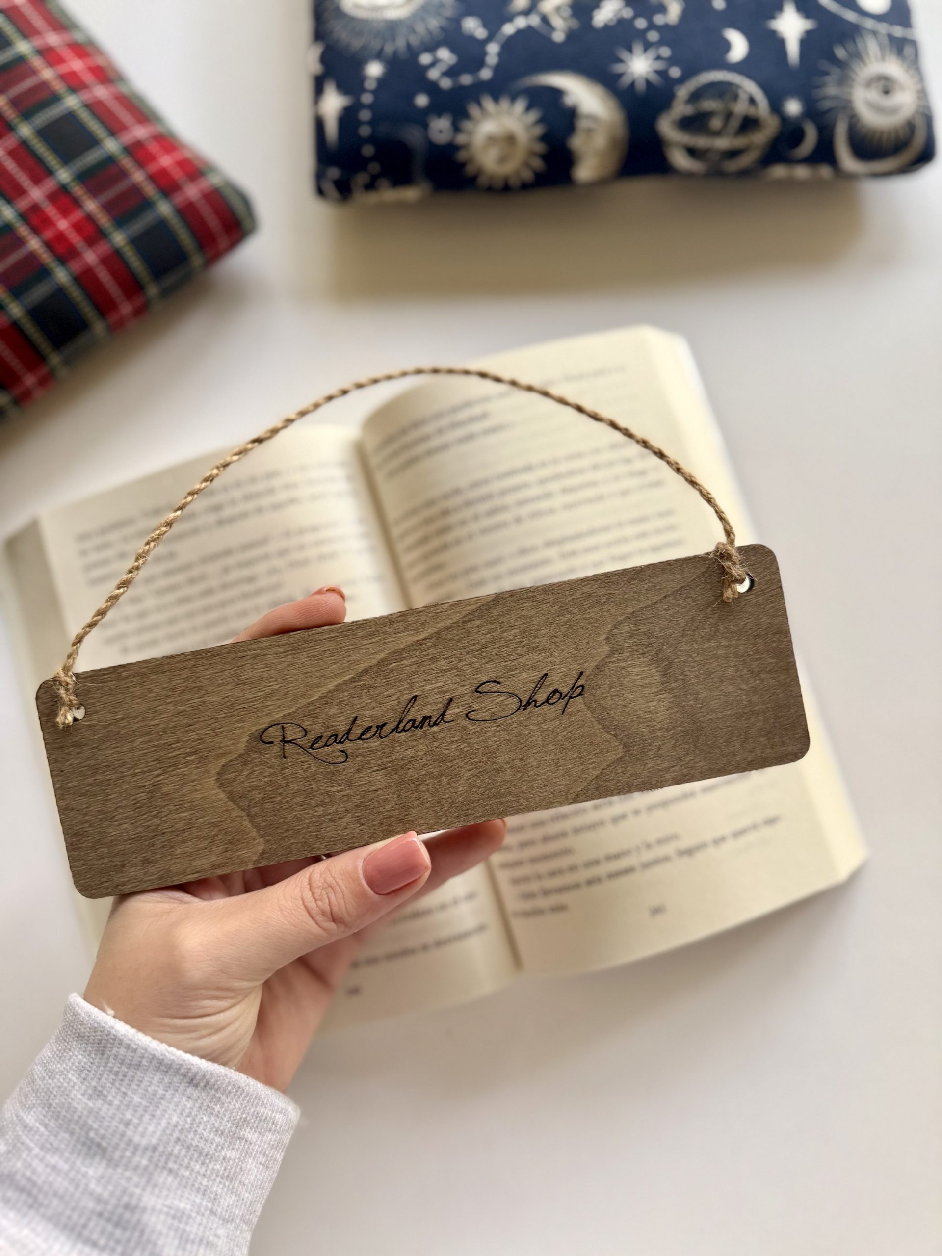 Letrero de madera con cuerda trenzada para colgarlo en tu espacio favorito (La medida es de 20x4cm)